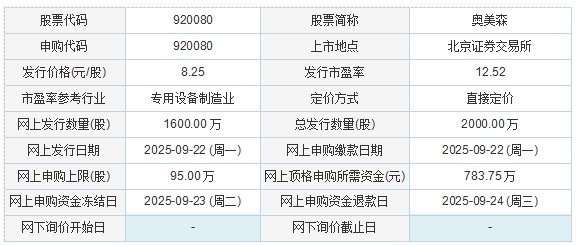 Omesen Intellignent Equipment Co.,Ltd。(北京证券交易所)赞助商(Lead订阅者):Cinda Securities Co.,Ltd。公司产品可广泛用于新能源和其他设备工业,环境保护,风能发电和LITHIUM电池,并且是实现生产自动化,智能和效率的关键设备。该公司的主要产品包括用于热交换器的智能生产设备,智能管道加工设备以及其他定制智能设备(环境保护设备,热锂电池压力机和训练设备,风能根部根的根铣床等)。到我们签署Prospercto的日期,Omesen Technology拥有274.446亿股公司,占公司总股份CAPI的45.75%塔尔。基于维持行动的投票权足以对股东会议的决议产生重大影响,并且是公司的控制股东。 Omesen Technology股东是小米,小米和Lei Lin,股票比例分别为56%,35%和9%。长短红色,长小,关·尹齐和林林直接维持43.29亿股,649,700股,59.32亿股和590万股股票,分别代表7.22%,1.22%,1.08%,9.89%和9.83%的总股票。 Long红色,长小,Guan Yinqiu和Lei Lin直接控制公司的442.593亿股,占公司总股票资本的73.77%。根据他们的股东的说法,他们可以在公司股东的会议,董事和高级职员的选择以及公司的发展战略和商业决策的决议中签署一项重要的协议。公司的真正COntrollers是长小的,小小的,关·Yinqiu,Lei Linvinagre。其中,长野和长小的兄弟是兄弟,长野和关·元古是已婚关系,而长小林和雷林是夫妻的关系。 2017年3月20日,长小呼,长小,关·辛克和莱林签署了“共识法的协议”。这规定,这四个人必须在董事会/股东会议上就与公司的商业发展以及董事会/股东相关会议有关的关键问题行使提案权。如果不可能就行使与公司商业发展有关的主要问题的投票权达成共识,那么Long Xiaobin的意见直接和间接地希望公司中最大的股份获胜。该合同长期有效,并形成了协调行动的明确而稳定的关系。 PU的前景Omson在2025年9月18日透露,BLIC发行了北京证券交易所未指定合格投资者的股票,这表明该公司计划筹集1655.59亿元的元素,用于在金属管道和其他定制智能设备以及其他R&D中心的数字培训设备的生产基础上使用。 Omson于2025年9月18日透露,向未指定的合格投资者公开发行股票的宣布,北京证券交易所的名单表明,如果发行成功,将出售过多的替代者。在行使期权之前,Compañía收集的资金总数为1.65亿元人民币,在扣除估计的发行成本为23.3462亿元(不包括增值税)之后,估计的收集资金量为1.1638亿。如果完全行使了过多的选择,则该公司收集的资金总数为1.897亿元,扣除后估计的发行成本为257.67亿元(不包括增值税),估计的资金量为1.6398亿元。