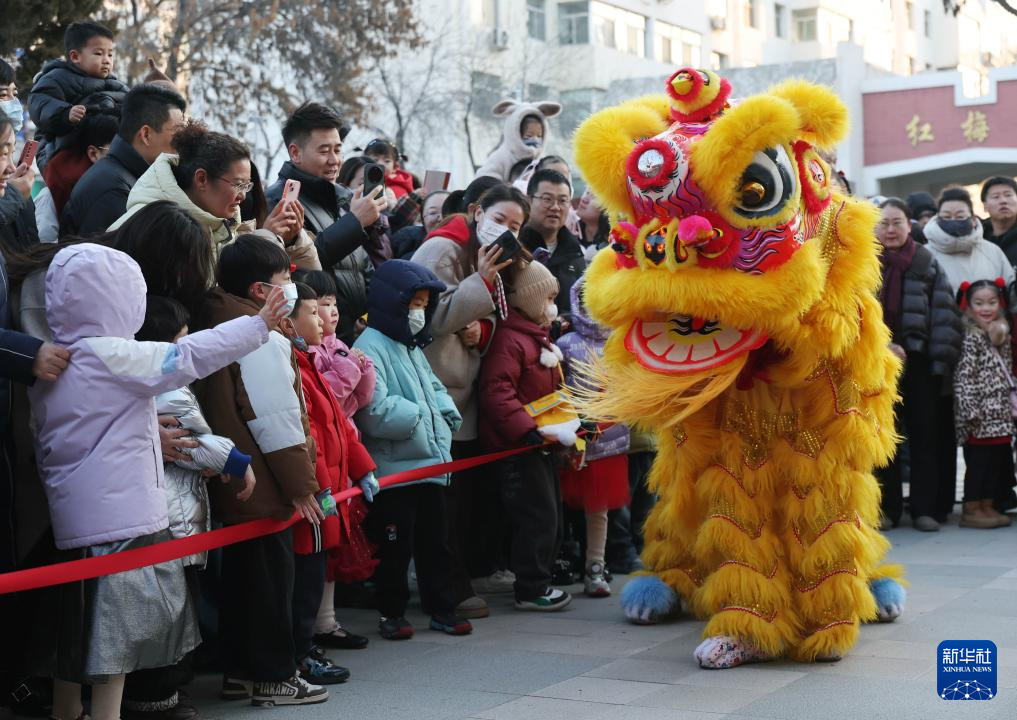 12月27日,孩子们观看了舞狮表演。新年将至,宁夏银川邮电幼儿园举办“非物质文化遗产传承,与可爱宝宝一起迎新年”活动,邀请舞狮、剪纸、糖画、川剧变戏等非物质文化遗产项目传承人,为孩子们进行现场表演体验活动,让孩子们近距离感受中华优秀传统文化。新华社记者 王鹏 供图