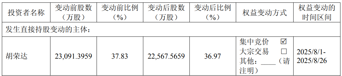 中国经济网络北京,8月27日,Sanmei Co.,Ltd。(603379.SH)昨晚透露了一项迅速的公告,即控制股东及其协调员的权利和利益触及了1%的措施。 2025年8月26日,该公司收到了“ Sanmei行动中股份减少的通知以及与1%量表接触的行动的变化”。从2025年8月1日到2025年8月26日,Hu Rongda通过集中式投标交易,通过降低我们的行动,总共占据了5,238,300股股票,从而降低了我们的行动,占我们总社会资本的0.86%。此次削减后,胡隆达(Hu Rongda)及其共同演员公司的总诉讼从62.83%下降到61.98%,而行动的变化达到了1%。基于o范围内股票的平均价格f 54.11元人民币,胡隆达(Hu Rongda)正在减少其持股量,并收取2.83亿元人民币。这种股权的变化是由于债务人胡隆达先前揭示的传播计划的减少而引起的。遗产的这种变化与传播债务人先前揭示的计划和承诺一致。在传播之日,尚未实施减少传播债务人行动的行动。 Sanmei Co.,Ltd。于2019年4月2日被纳入上海证券交易所,发行了59,733,761股,每股32.43元的发行价格。赞助商(首席承销商)是Chang Jang Securities Company的保险公司和赞助商有限公司。赞助商是张·海芬(Zhang Haifeng)和王·海托(Wang Haitao)。 Sanmei Co.,Ltd.公共行动行动的资金总额为1,9.37,1.6.6亿元,净资金净额为1,8128.96亿元。 2019年3月20日,Sanmei Co.,Ltd。首次公开报价PRospect是,该公司将扩大20,000吨1.1,1,1,1,1,1,1,2四氟众和分销项目。杂化酸项目,Cheong Gin Sanmay 30,000吨环境保护,Sanmay,Sanmay,Ltd。R&D项目与测试中心,促进建造品牌Sanmay的建设项目,退还银行贷款,替代职业资本。 Sanmei Co.,Ltd.公共发行新诉讼的发行率为94,329,549.44,除了总计124,269,869.23元之外。 2020年5月26日,Sanmei Co.,Ltd。宣布了2019年的公告,内容涉及实施年度股票。 Sanmeico。,Ltd。表示,在此期间,参与利润和增强物资本是基于公司的总股本。所有股东每股增加0.40股,总现金股息为196,225,404.75元,现金股息为174,422,582股。分配后,总股本为610,479,037股s。 Sanmei行动股份行动的注册日期为2020年6月1日,原始权利(利益)的日期为2020年6月2日。
